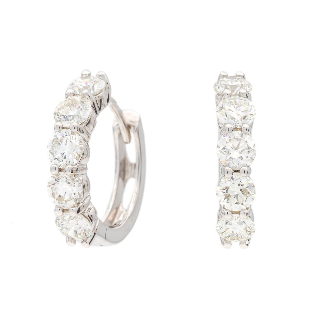 16mm, round huggie hoop earrings, with prong set 3.5-3.6mm diamonds.