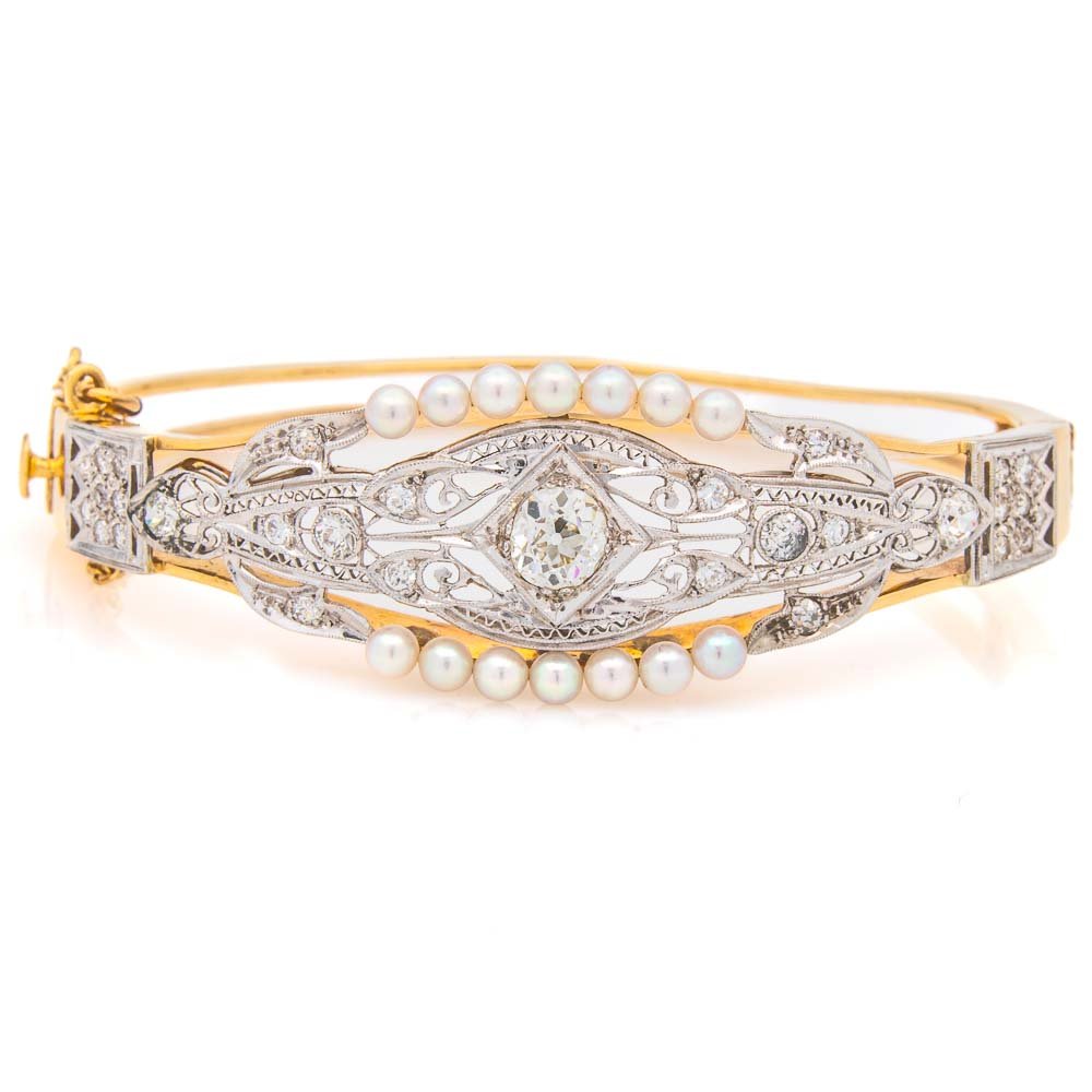 Antique Style Filligree, Diamond, and Pearl Fashion Bangle