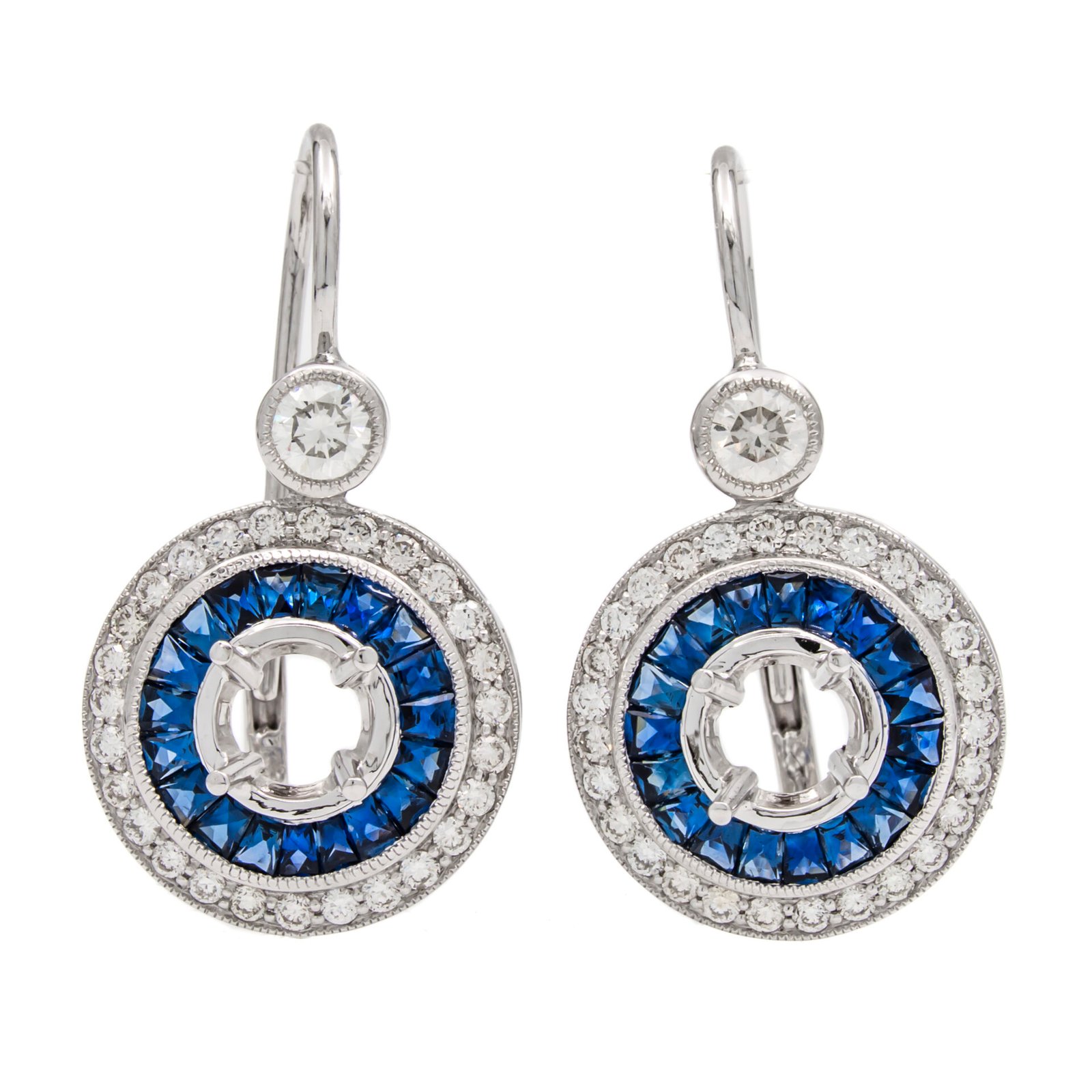 Double Halo Diamond and Blue Sapphire Dangle Earring Mounting