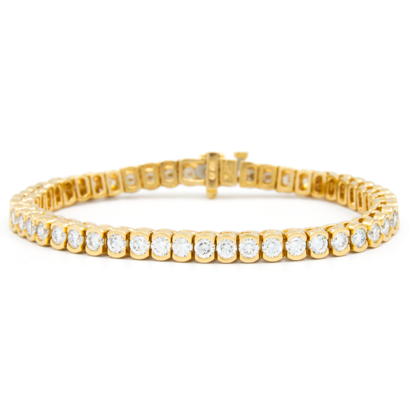 Tennis bracelet with 3.25mm diamonds set in partial bezel links.