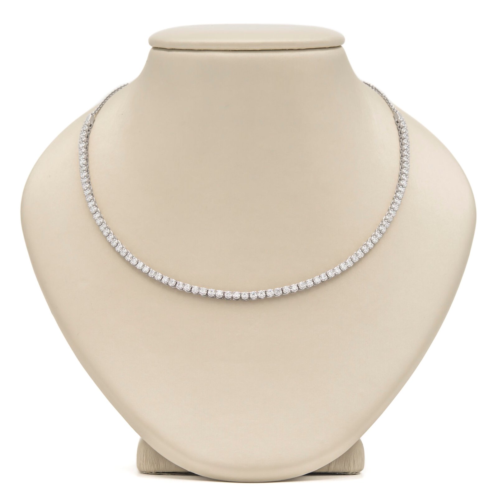 Fashion necklace with 8.75″ of illusion style links set with 1.9mm diamonds and adjustable cable chain in back.