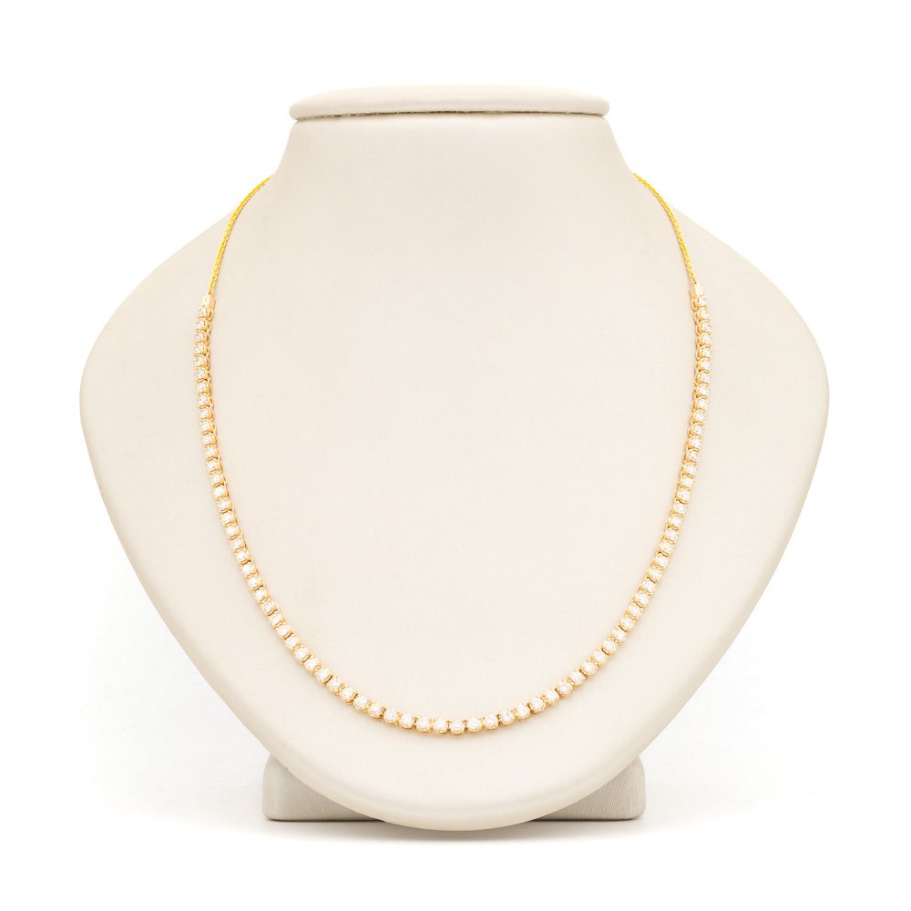 Fashion necklace with 8.75″ of illusion style links set with 2.4mm diamonds and adjustable cable chain in back.