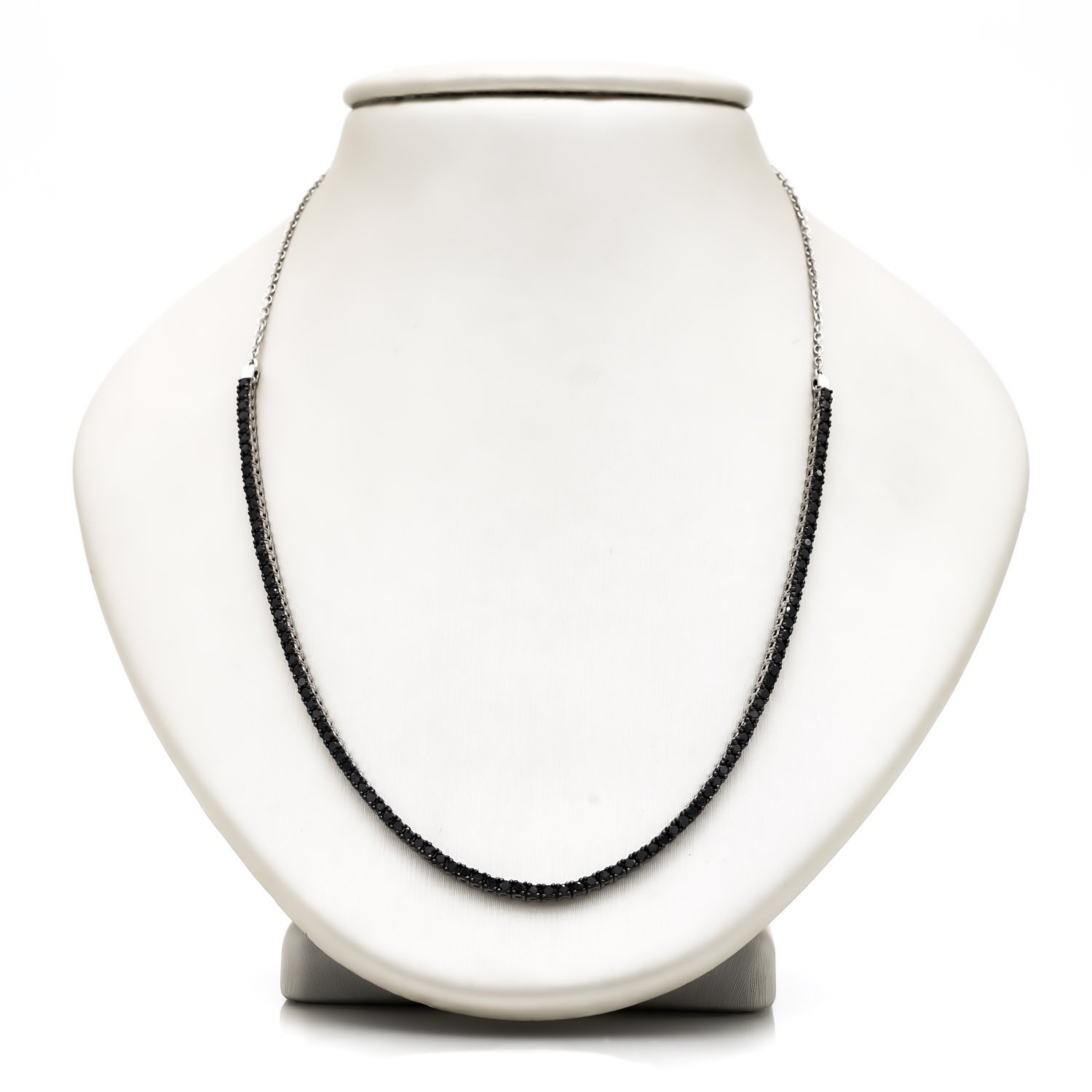 Tennis choker style necklace with adjustable chain and 2.87cttw black diamonds.