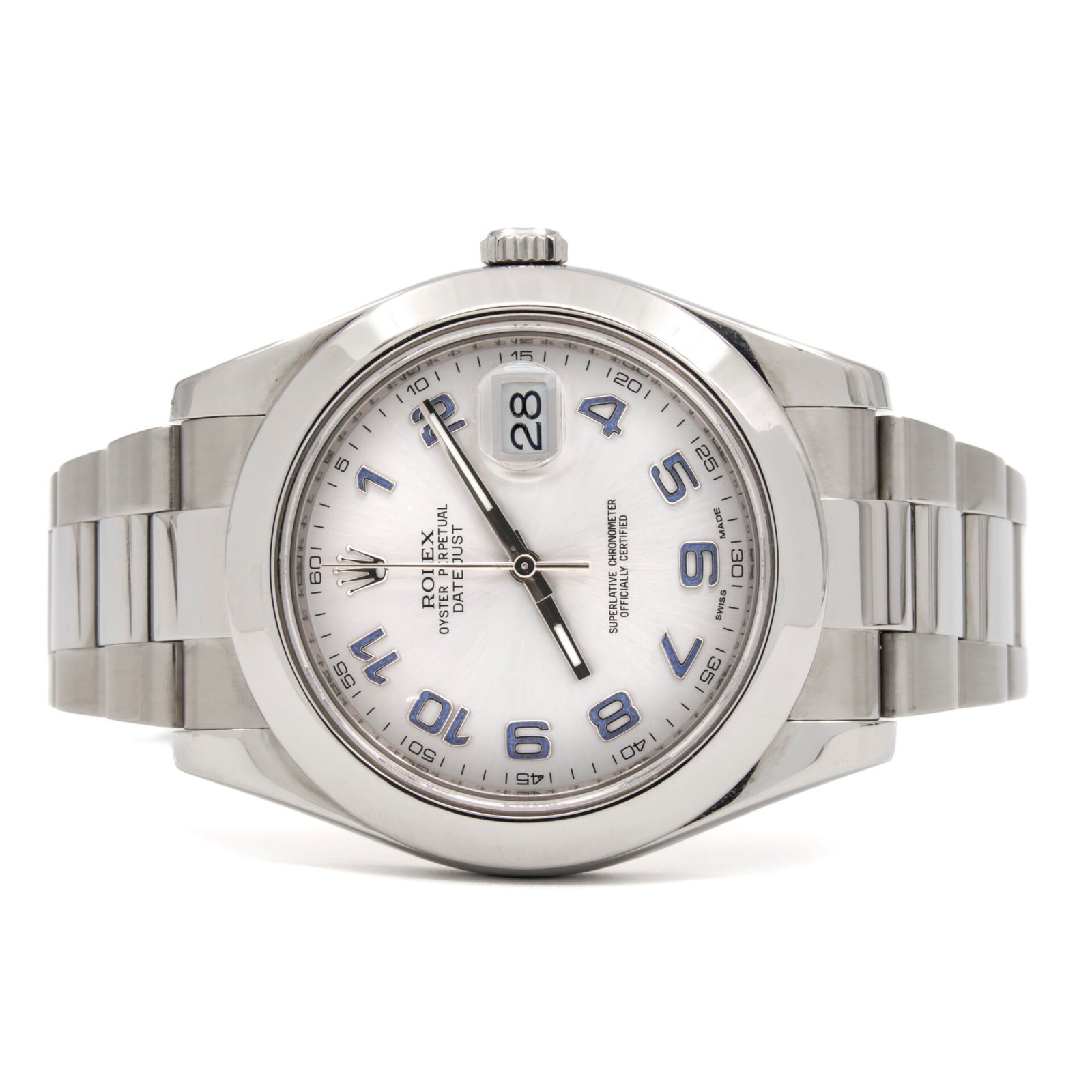 Rolex 40mm Datejust Silver Numbered Dial Smooth Bezel Oyster Bracelet No B+P