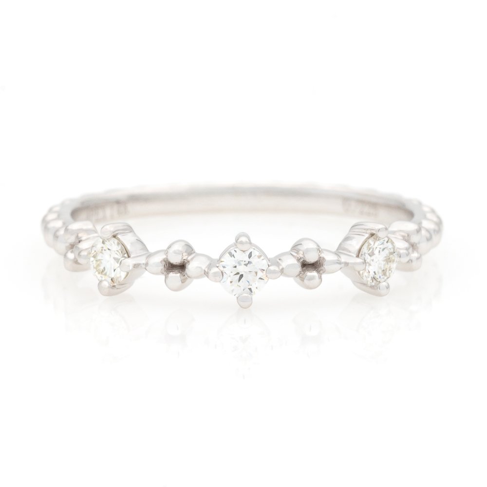 Beaded texture stack band with prong set 2.5-2.6mm diamonds.