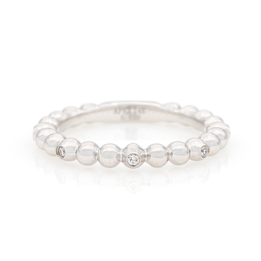 Bubble link style stackable fashion band with round diamond accents.