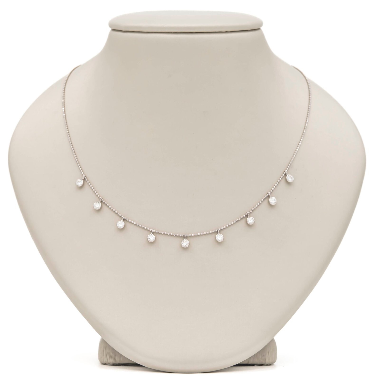 Dainty hollow bead chain with 3.2mm round diamond dangles.