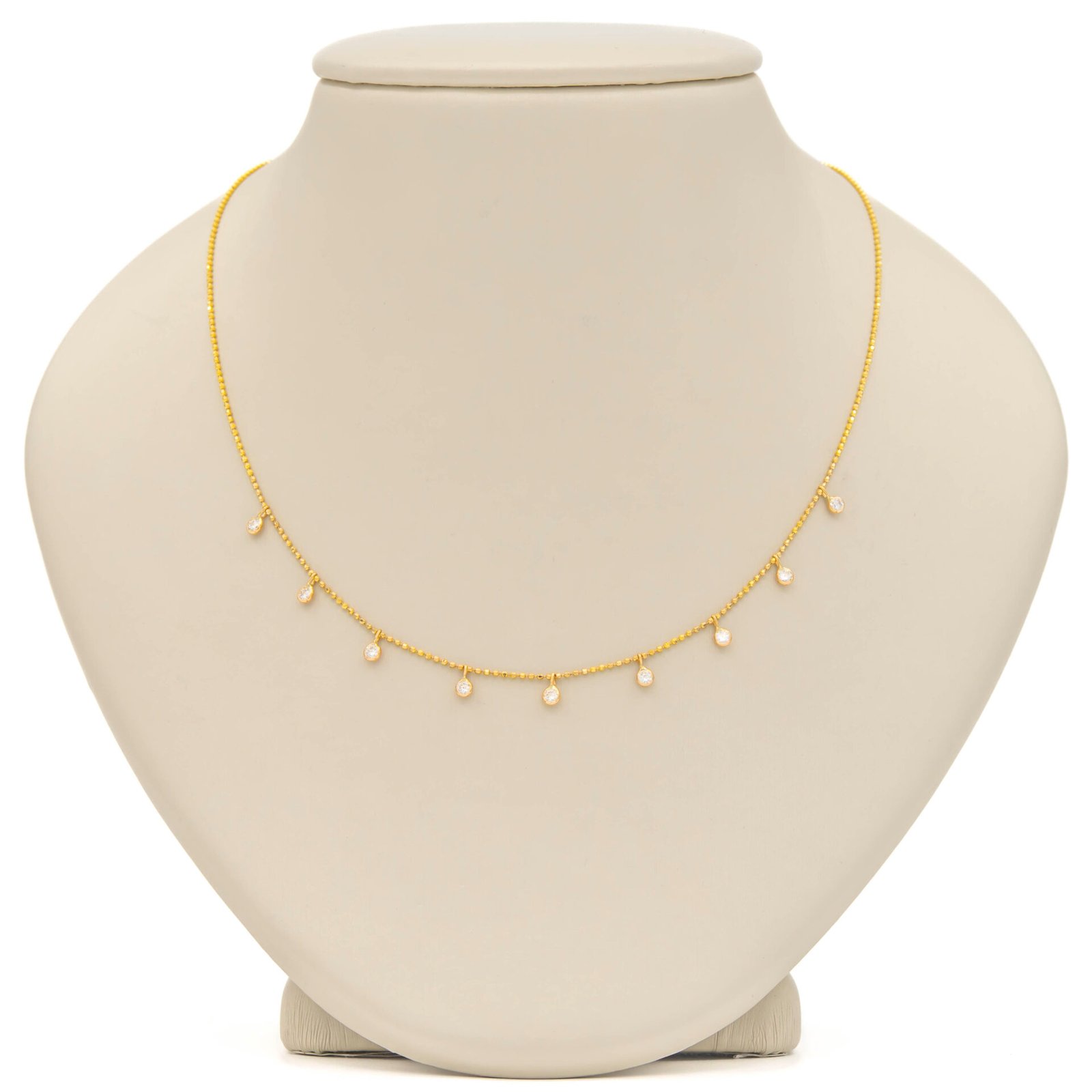 Dainty hollow bead chain with 2.3mm round diamond dangles.