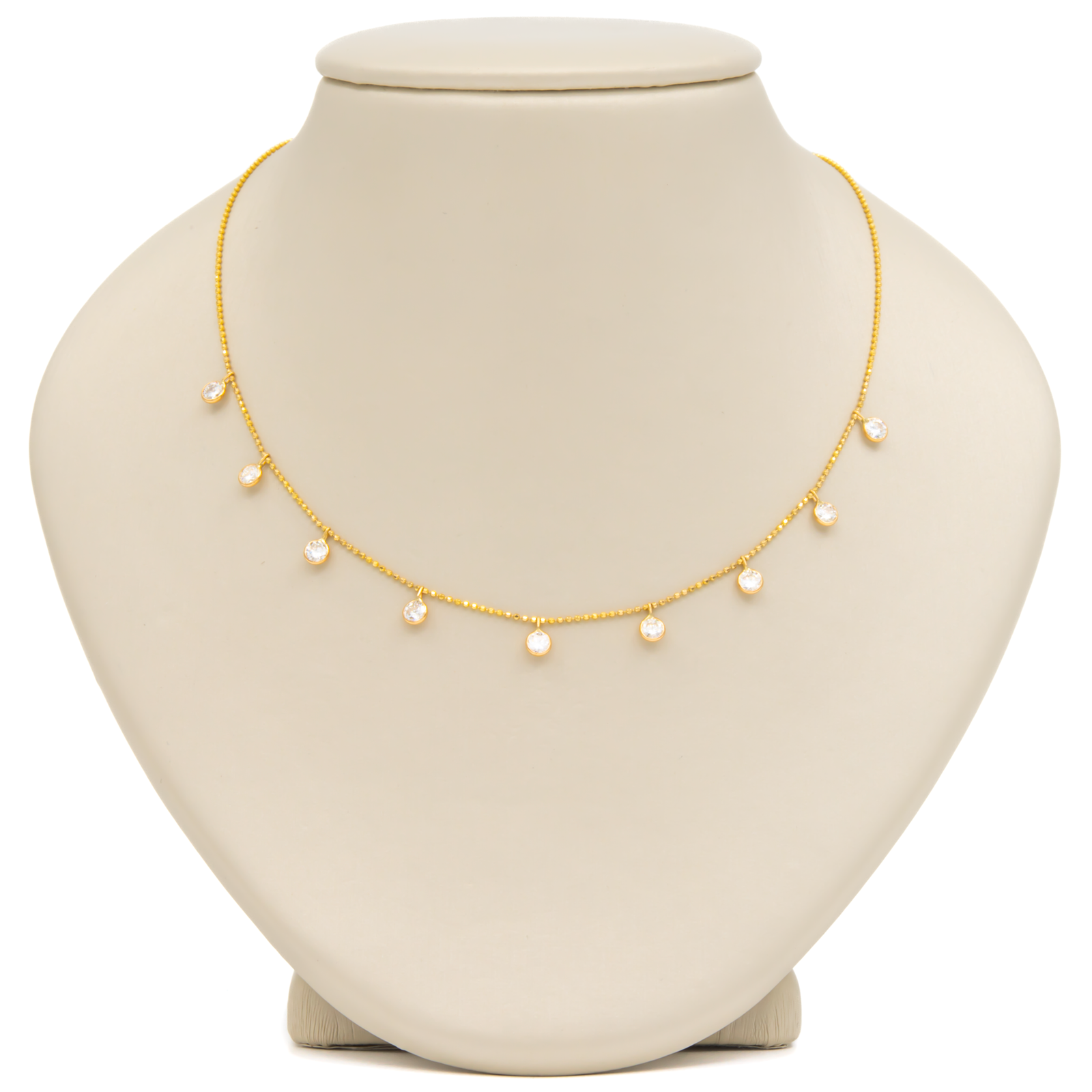 Dainty hollow bead chain with 3.5mm round diamond dangles.