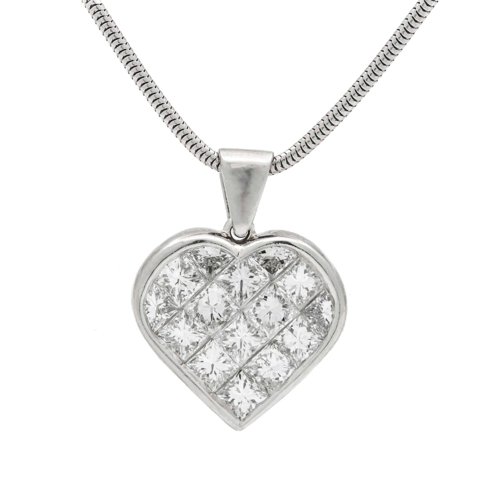 Invisible Set PR Diamond Heart Shaped Pendant on a 16in Chain