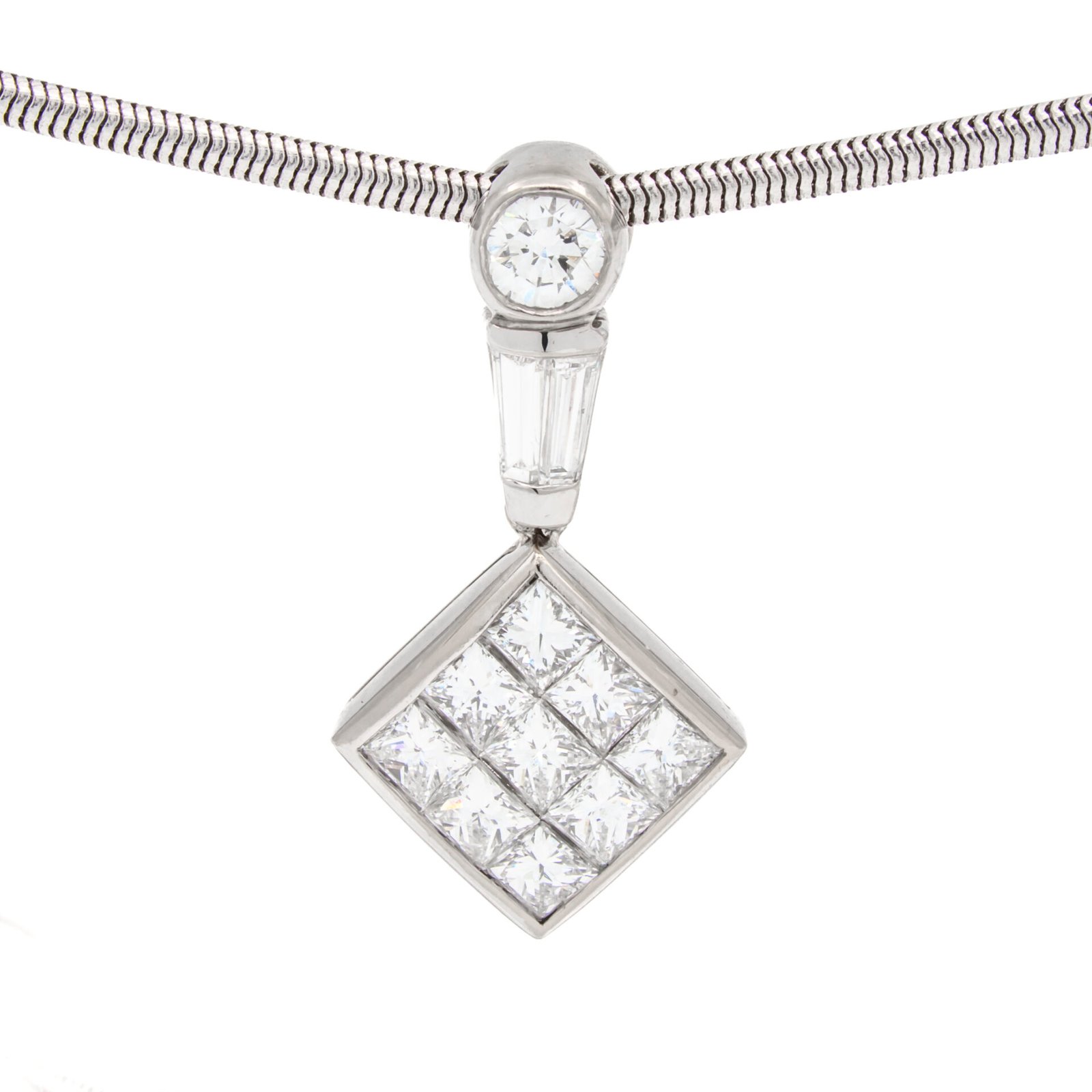 Dangle Diamond Earrings with Bezel Set BR, TBGT, and Invisible Set PR Diamonds