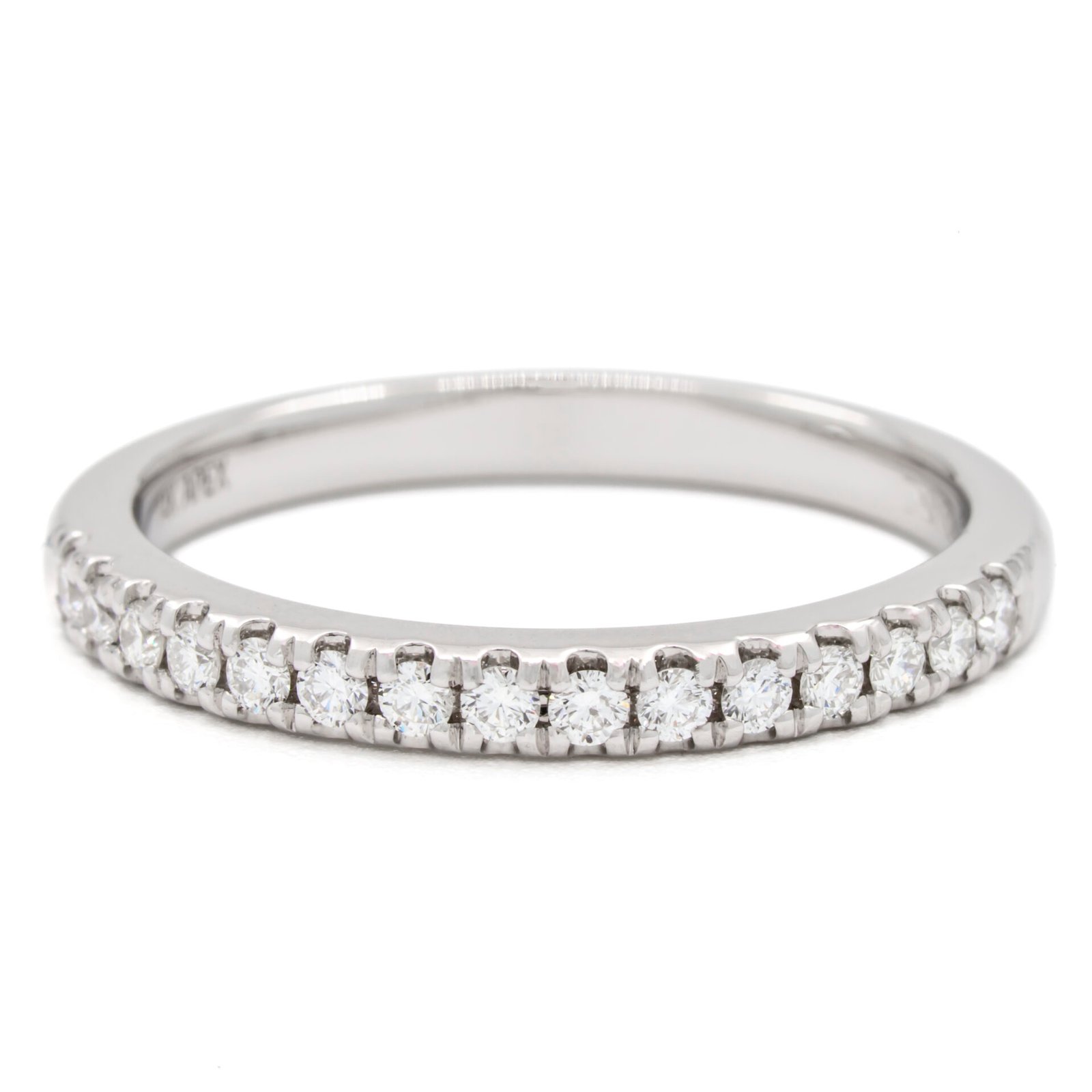 Straight, microprong set diamond wedding band with 1.5mm diamonds.