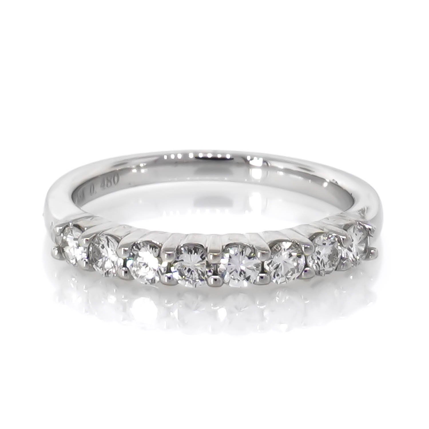 Prong set wedding band with 2.4-2.5mm diamonds on top only.