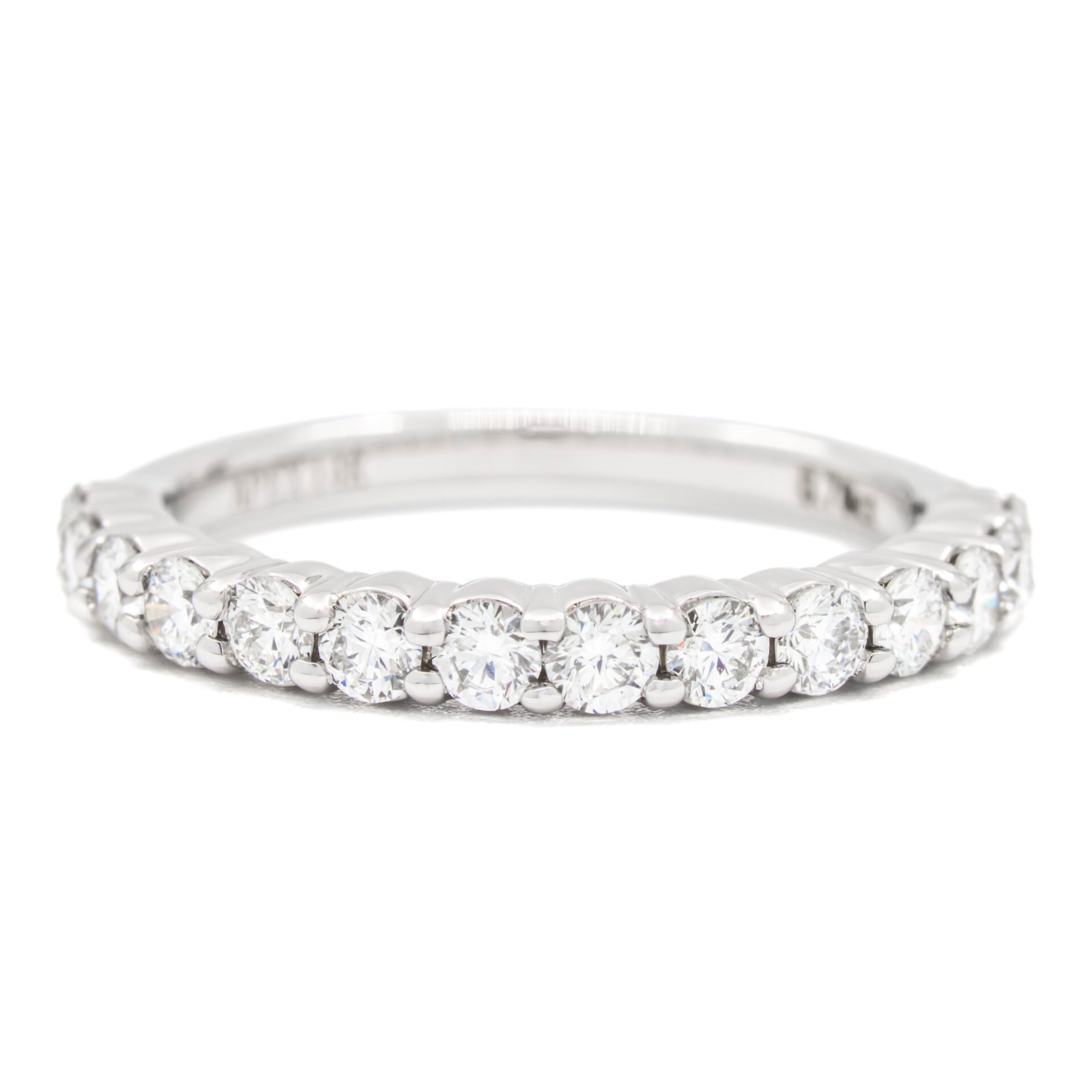 Wedding band with 2.4mm shared prong set diamonds, halfway around shank.
