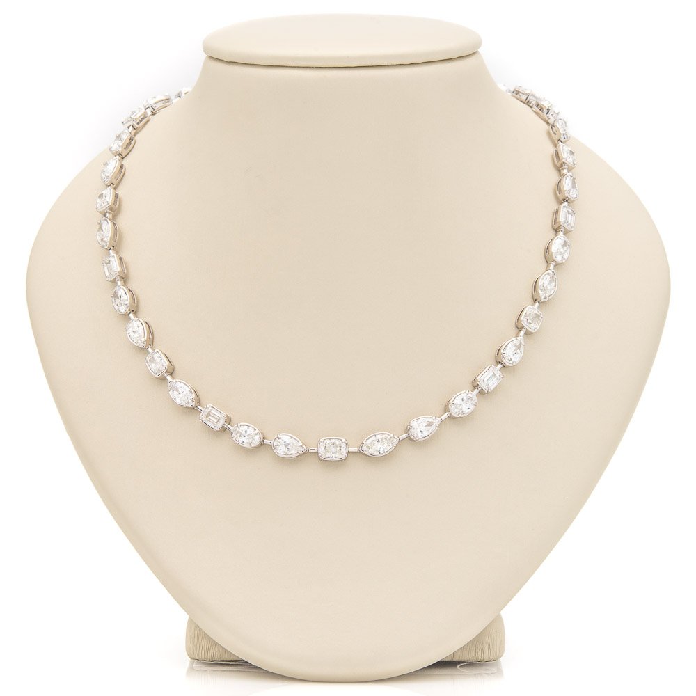 Mixed fancy shaped diamonds (Est 0.50ct each) prong set in faux-bezel settings 3/4 way around, with plain metal links in back.