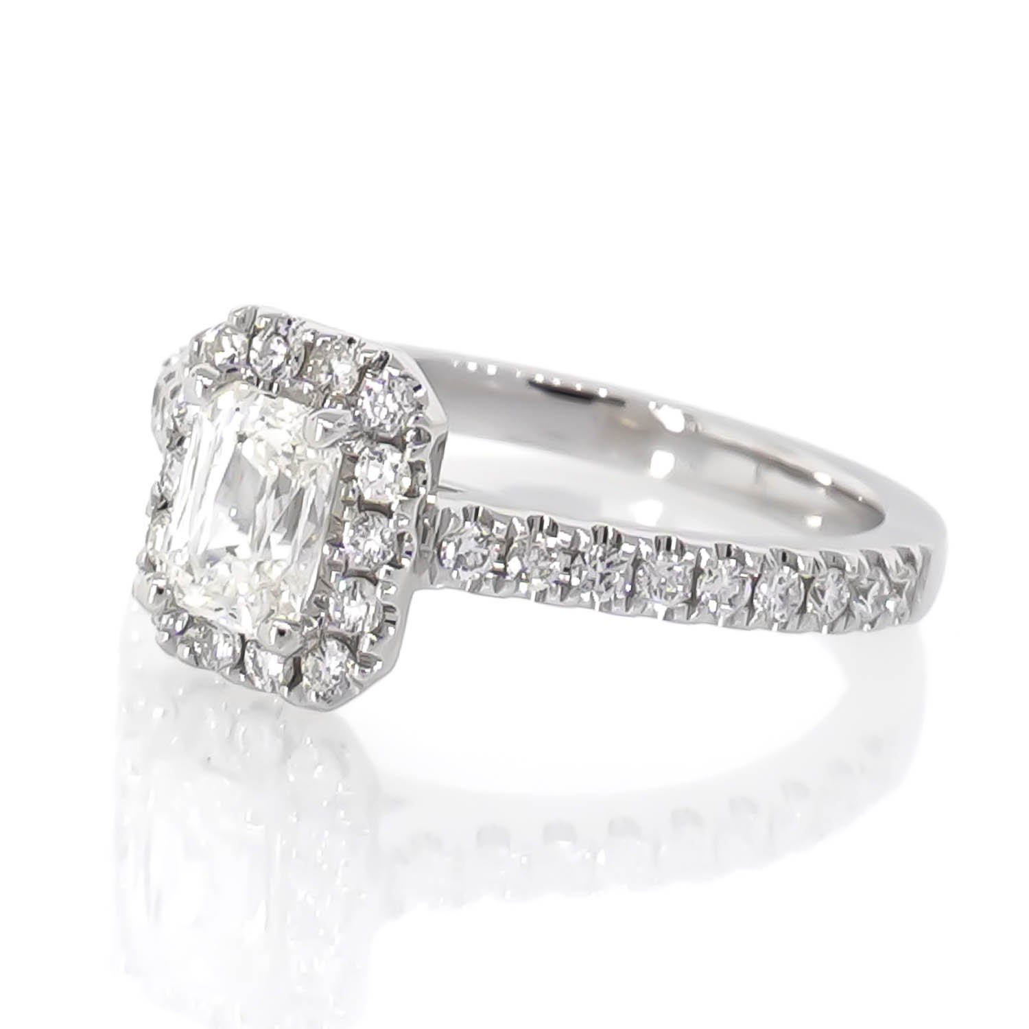 Flushfit, cathedral, halo ring with diamonds halfway around shank.
