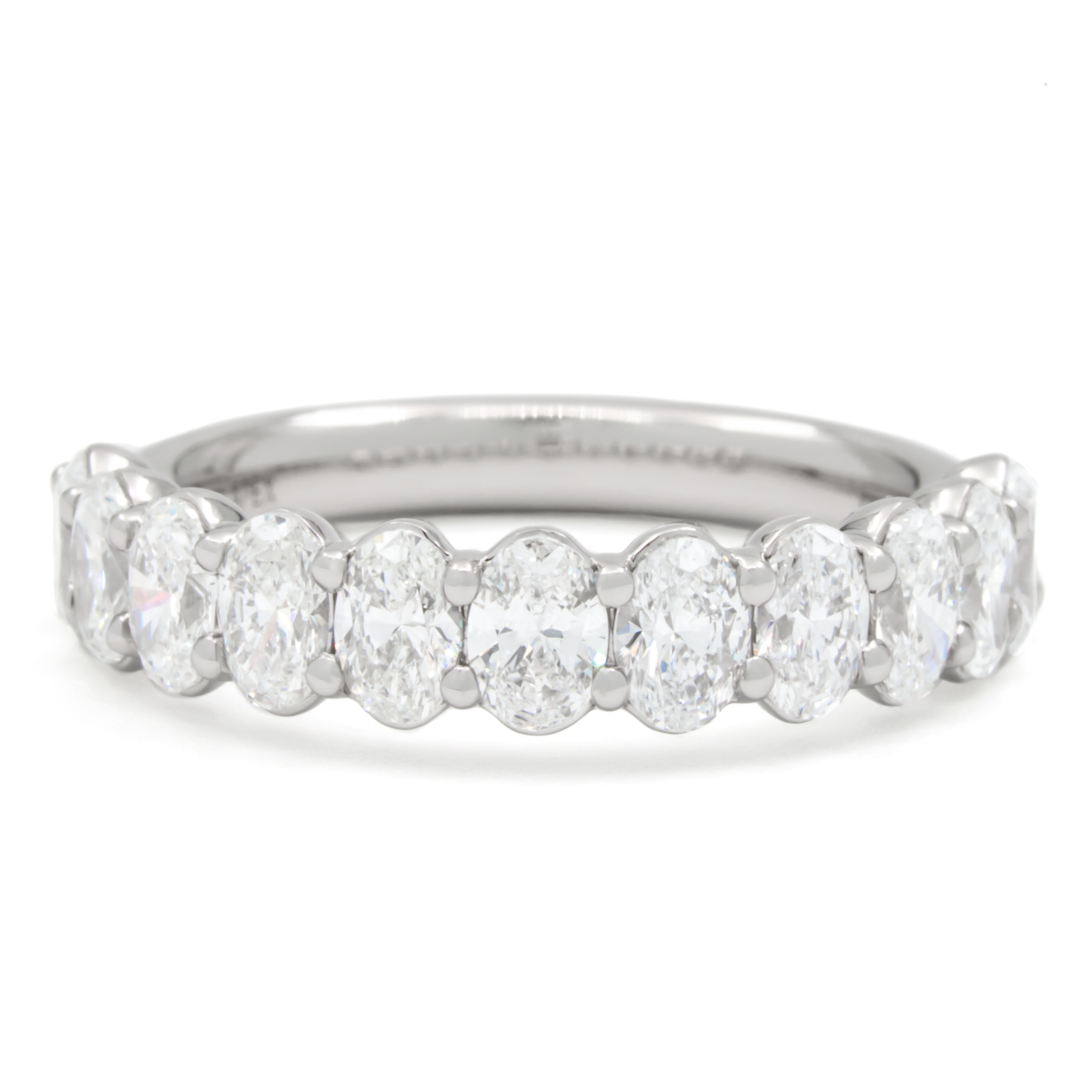 Low profile, buttercup style band mounting with shared prong set oval shaped diamonds est 0.11ct each.