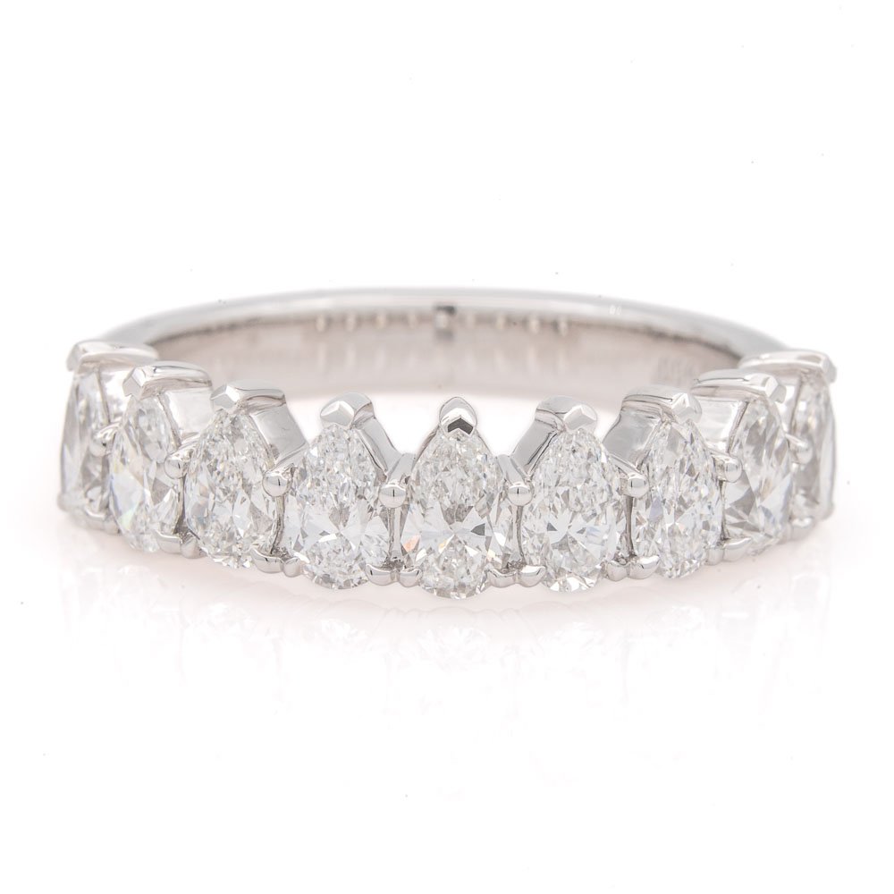 Prong set anniversary band with pear-shaped diamonds, set in same direction.
