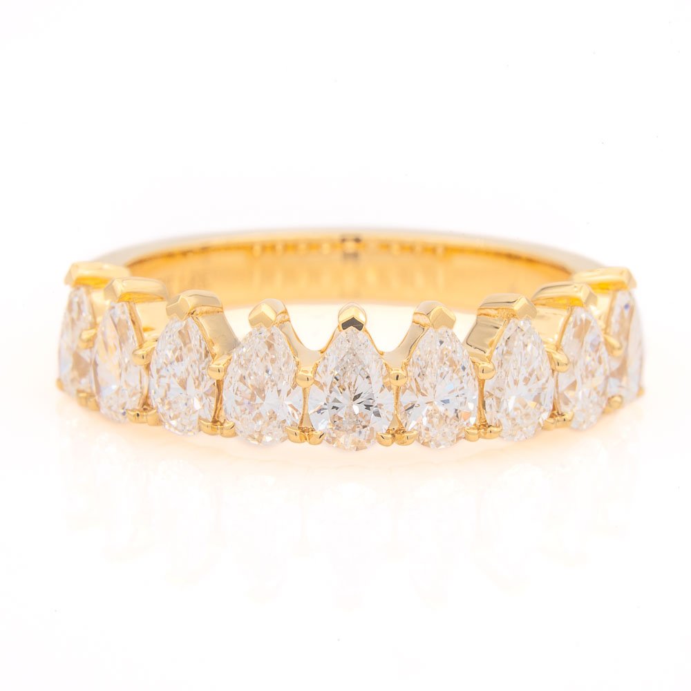 Prong set anniversary band with pear-shaped diamonds, set in same direction.