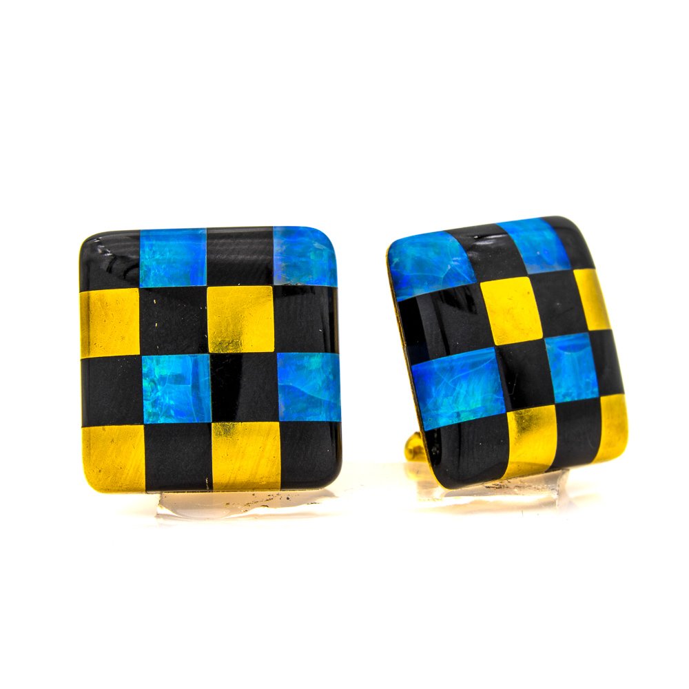 Tiffany & Co Black Opal, Gold, and Black Stone Checkerboard Pattern Clip On Earrings