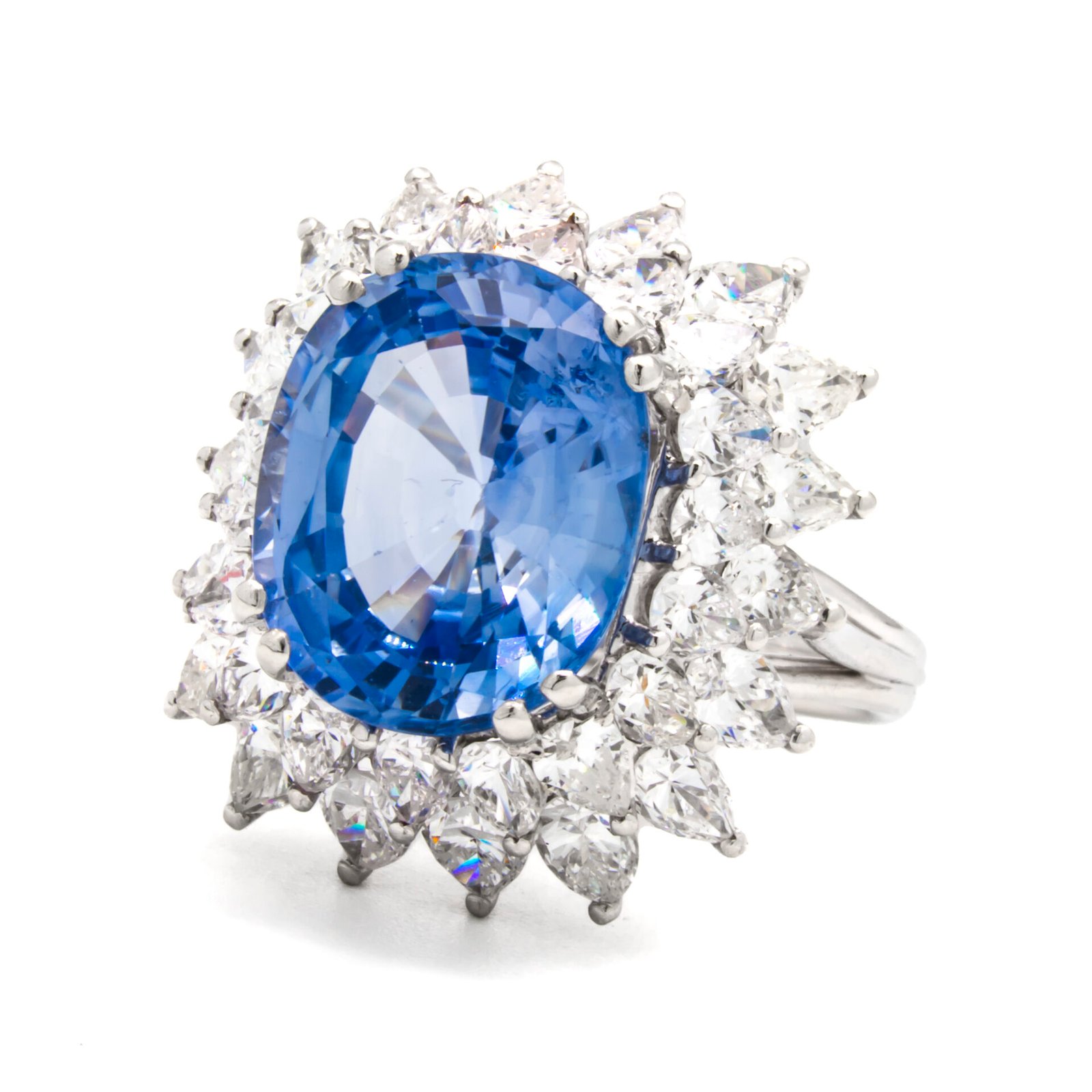 Light Blue 7.12ct CU Double Halo Ring with PS in halo.