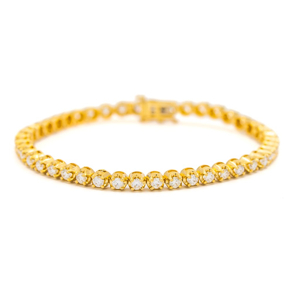 4-prong, open sided tennis bracelet, with rounded crown-like illusion links and 2.5-2.6mm diamonds.