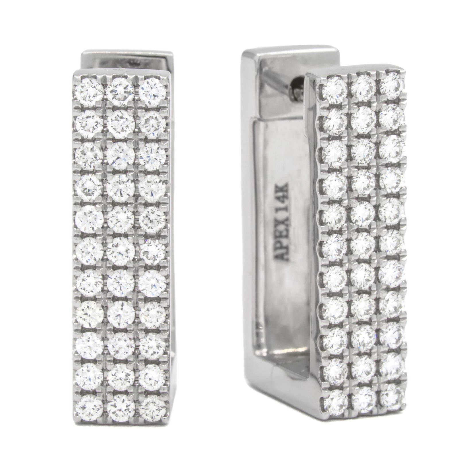 18x10mm Rectangular shaped huggie hoops with 3 rows of diamonds.