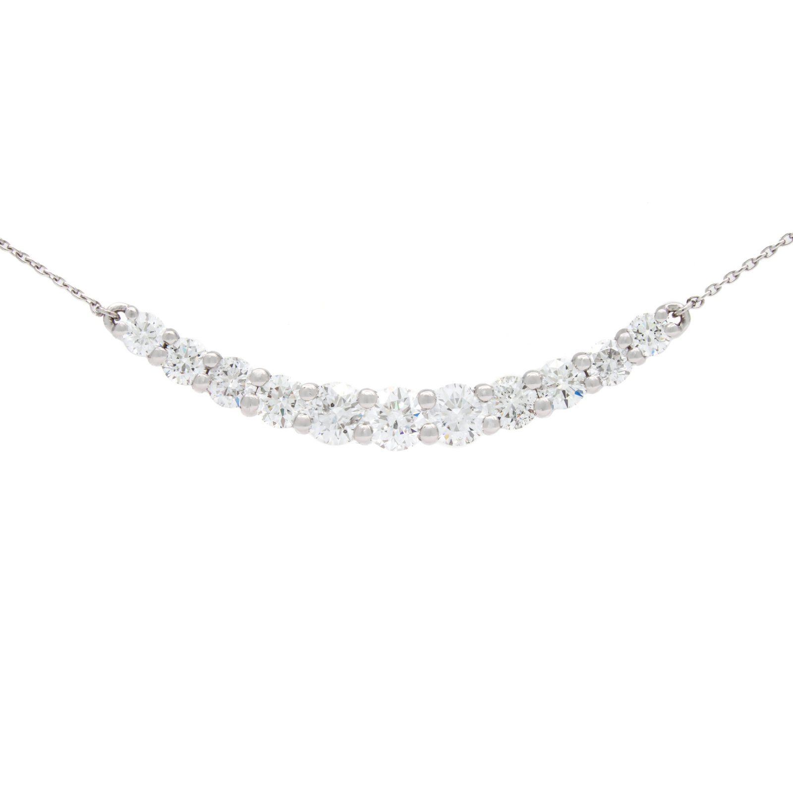 Stationary necklace plate with 11 graduated round diamonds in 4-prong basket settings. Est 2-3cttw