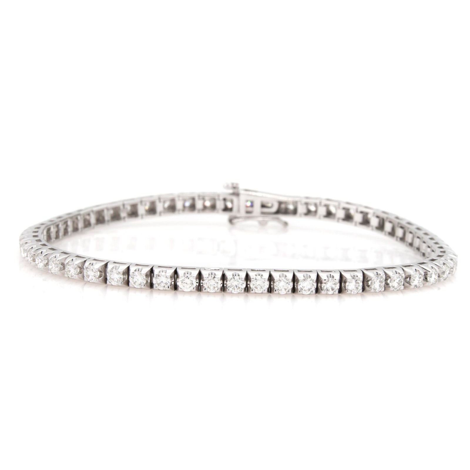 Lightweight tennis bracelet with basket links and microprong set 2.4mm diamonds.