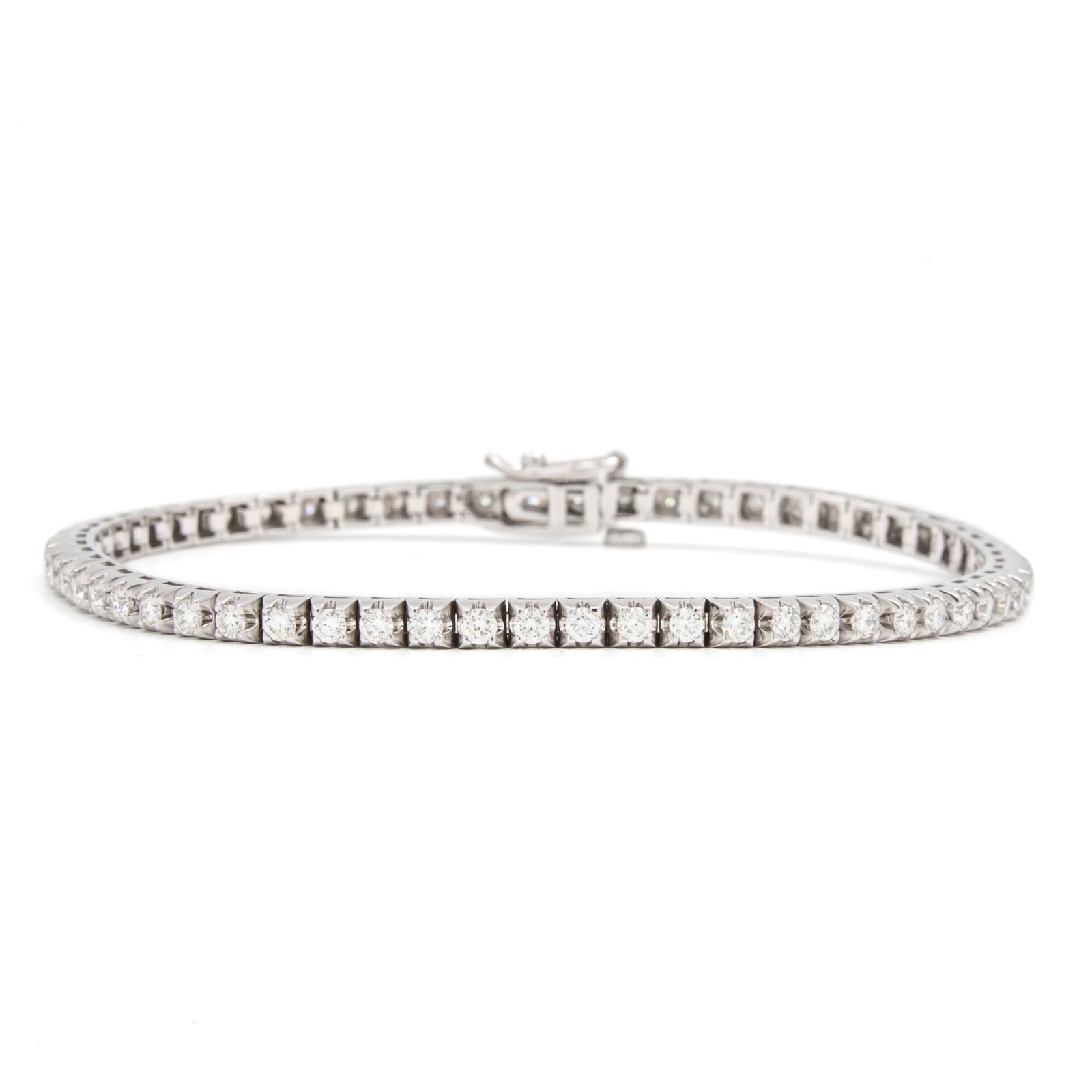 Lightweight tennis bracelet with basket links and microprong set 2.0mm diamonds.