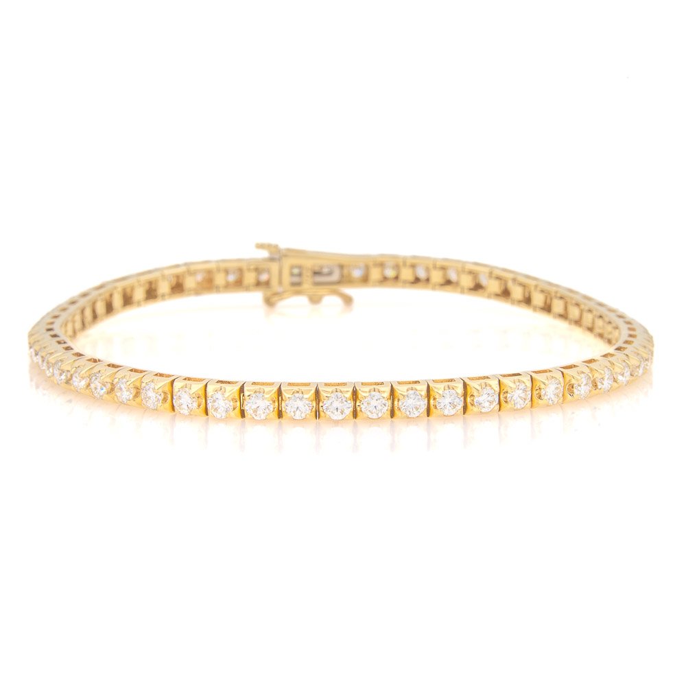 Lightweight tennis bracelet with basket links and microprong set 2.4-2.5mm diamonds.