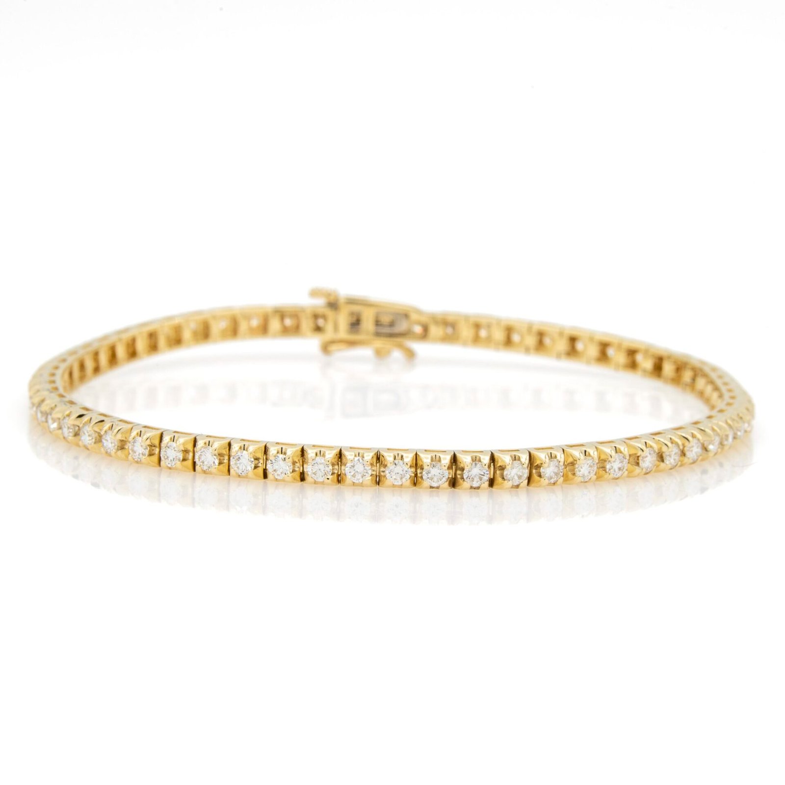 Lightweight tennis bracelet with basket links and microprong set 2.0mm diamonds.