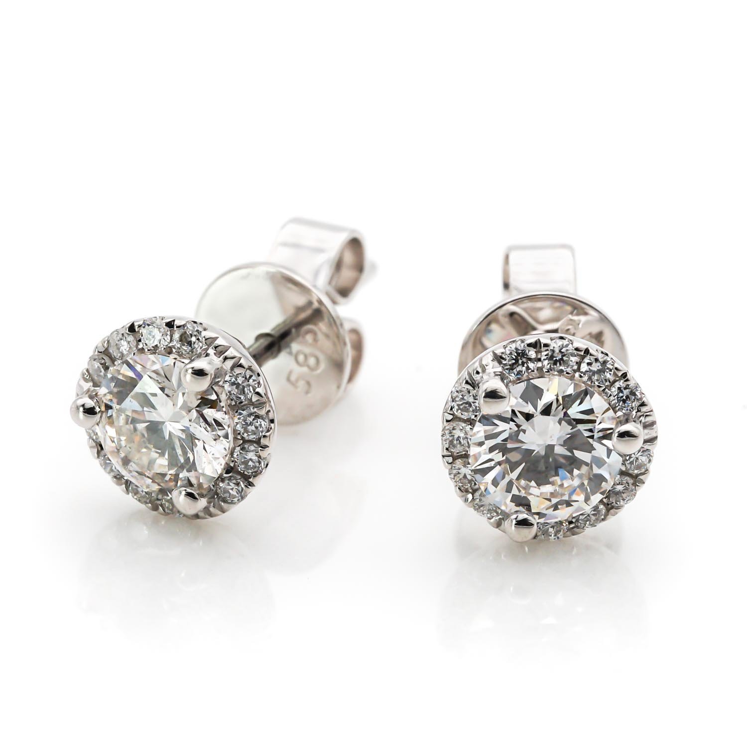 Round halo stud earrings with 1.0mm halo diamonds and 4.5mm round center stones.