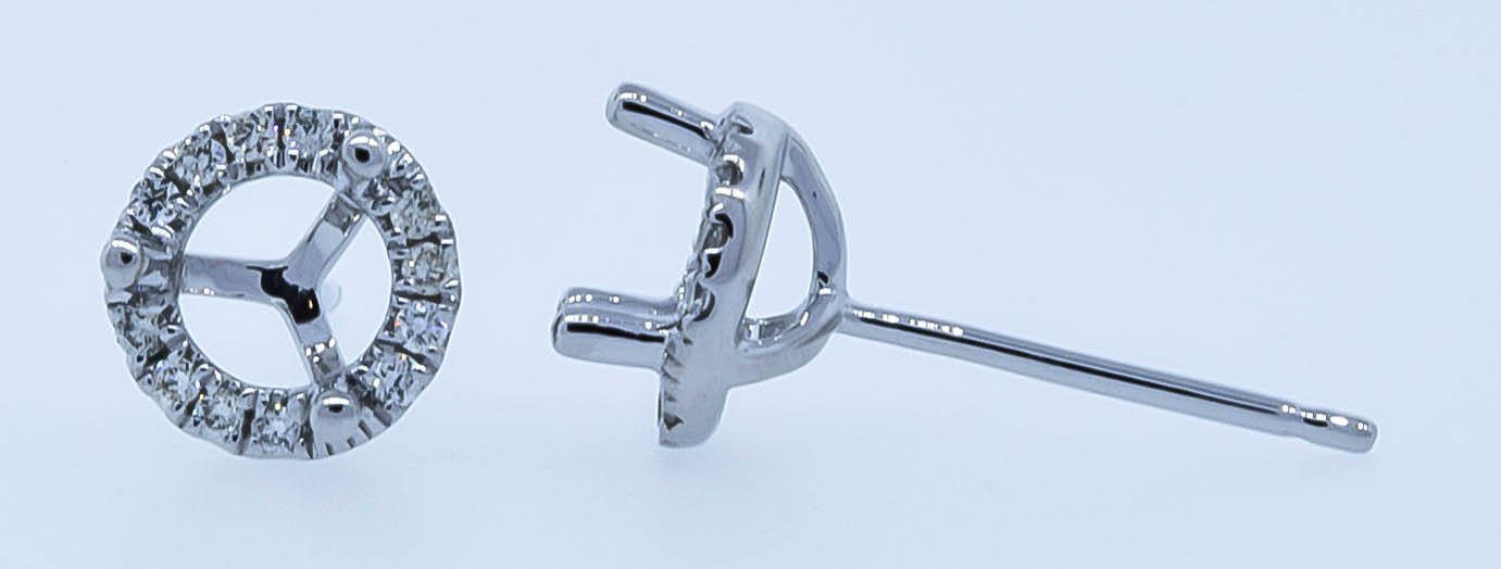 Round halo stud earrings with 1.0mm halo diamonds and 5.0mm round center stones.