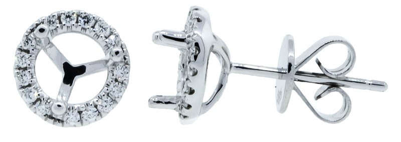 Round halo stud earrings with 1.0mm halo diamonds and 5.5mm round center stones.
