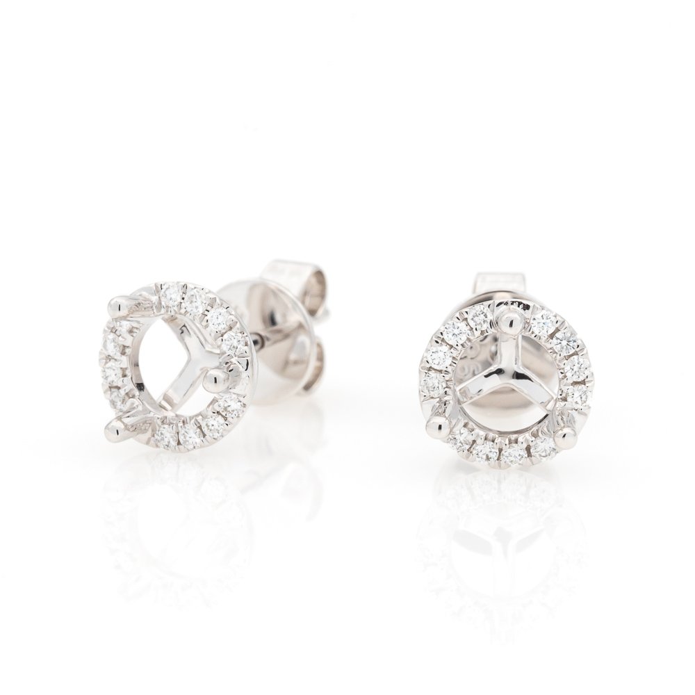 Round halo stud earrings with 1.0mm halo diamonds and 5.2mm round center stones.