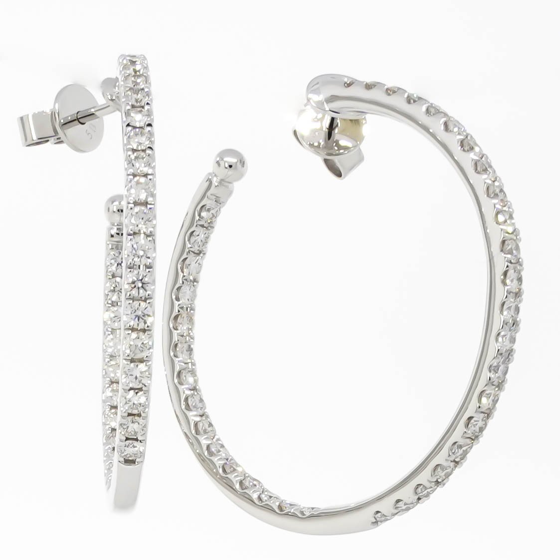 35mm Round hoops with 1.9-2.0mm diamonds microprong set, with straight/angled posts & friction backs.