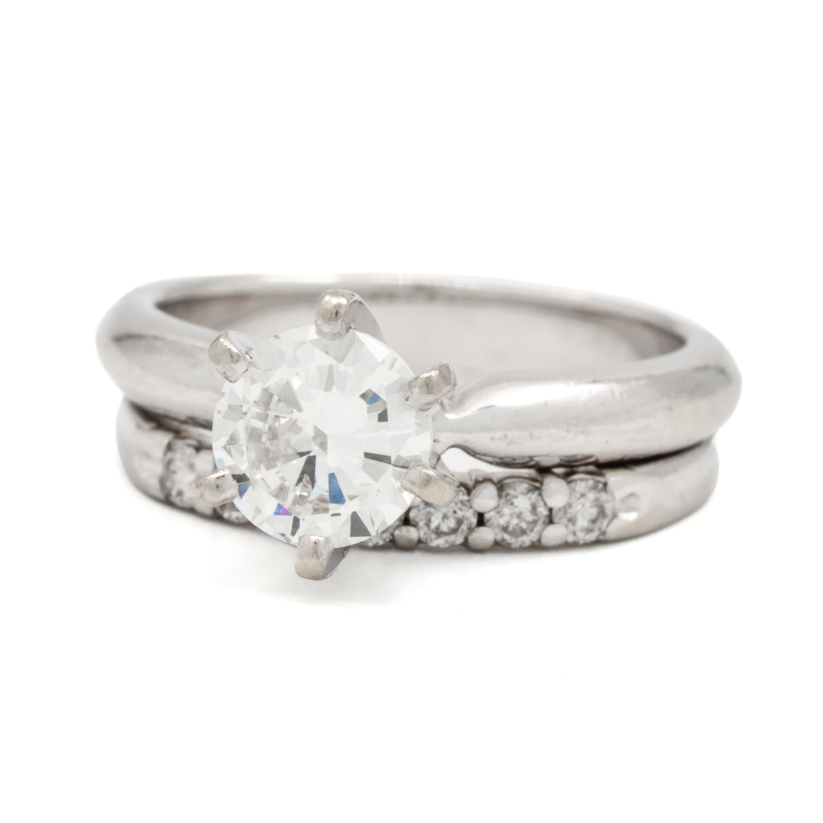 Six Prong Diamond Solitaire Engagement Ring with 1ct BR Center stone and Diamond Band