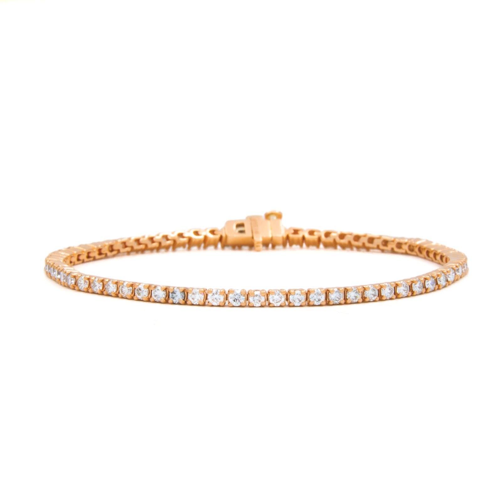 Rounded, solid link style, 4-prong tennis bracelet with 2.2mm diamonds.