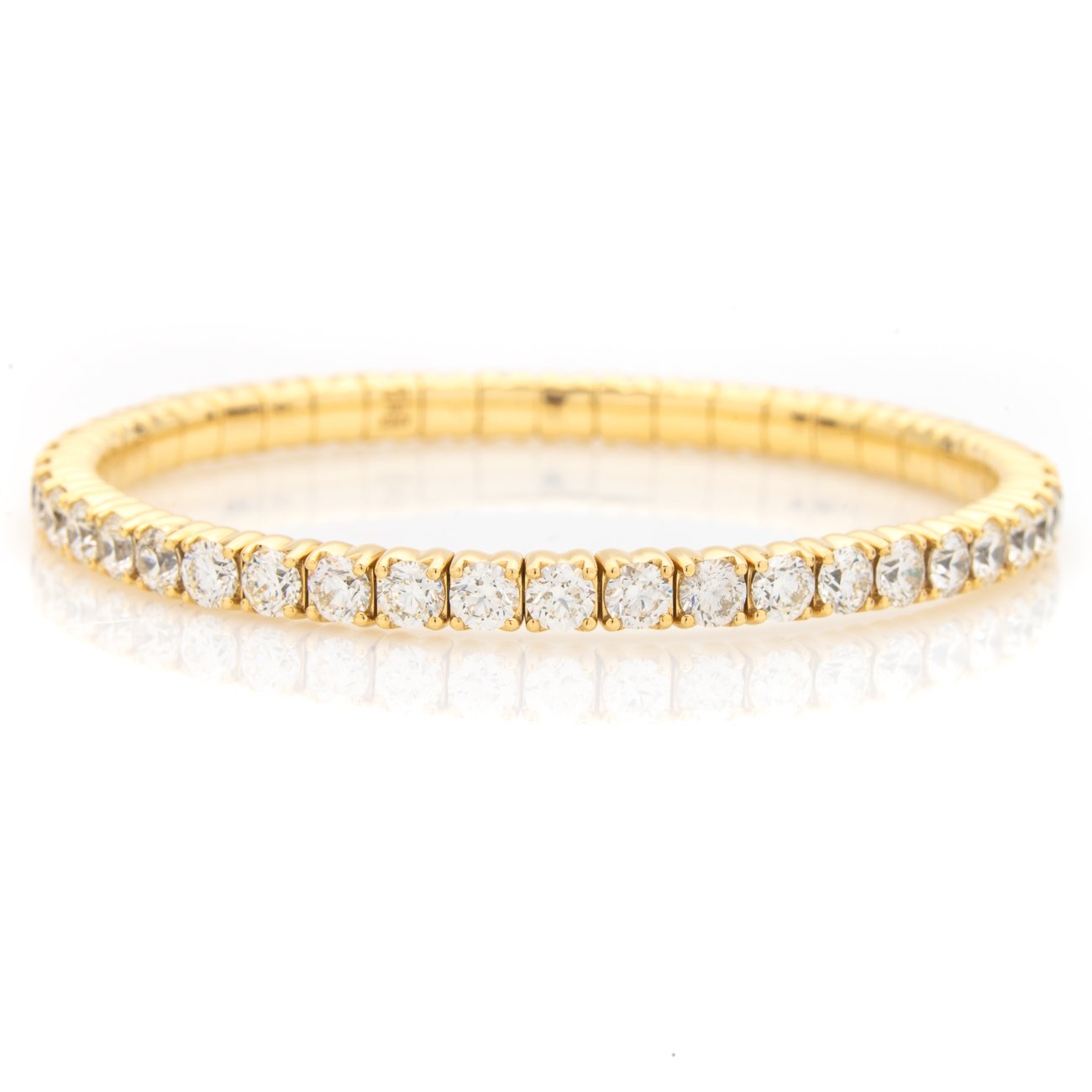 Stretchy tennis bracelet with 3.8mm diamonds. 54mm inside diameter, fits estimated 6.75-7.00″ wrist.