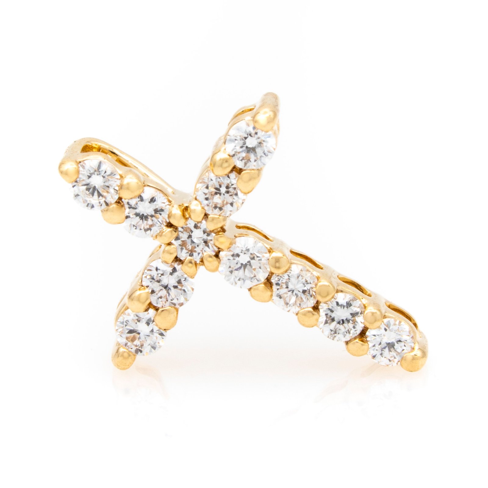 11 diamond prong set cross pendant with 1.3mm diamonds and hidden bail.