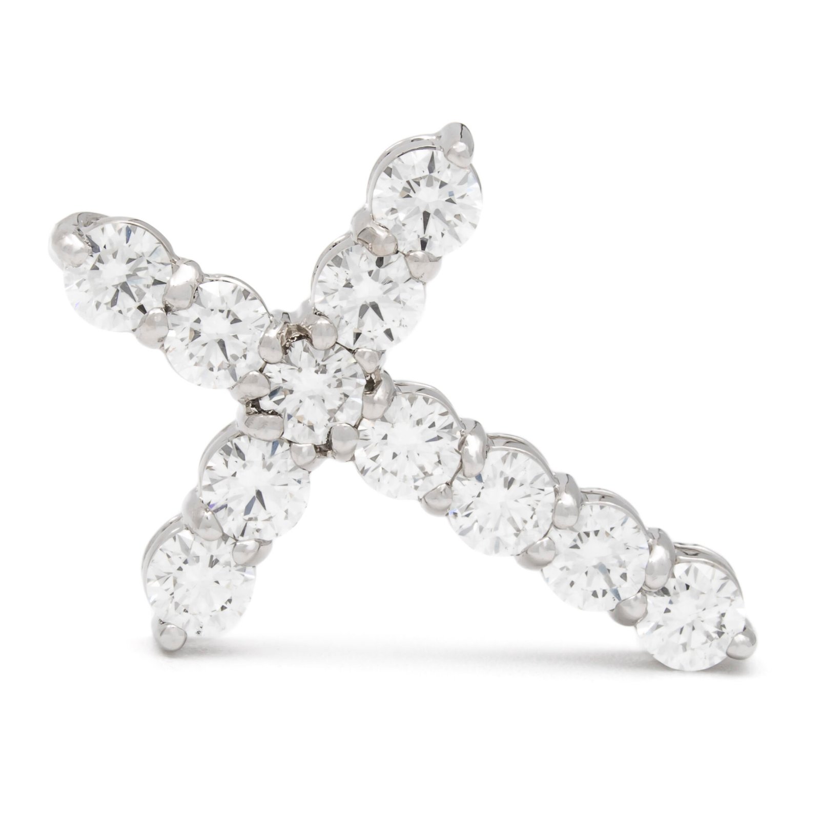 11 diamond prong set cross pendant with 3.7mm diamonds and hidden bail.