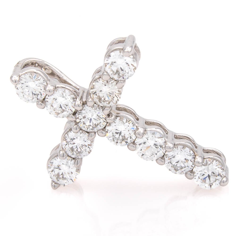 11 diamond prong set cross pendant with 2.6-2.7mm diamonds and hidden bail.